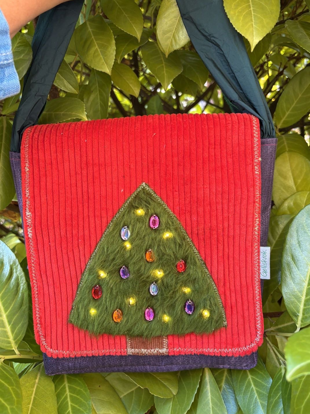 In der Anleitung appliziere ich einen Weihnachtsbaum, weil das beleuchtete so hübsch zu Weihnachten passt.  Den erhaltet ihr als Vorlage.